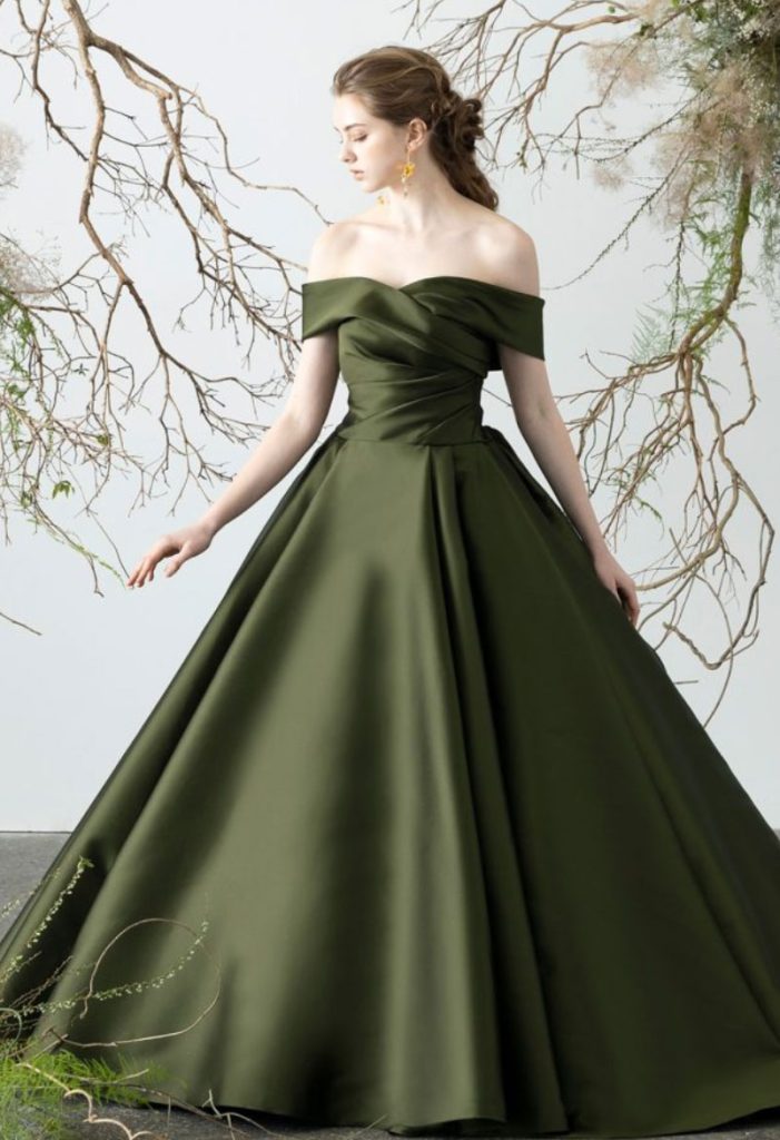 上質でなめらかな生地に深みのあるグリーンが印象的なドレス。