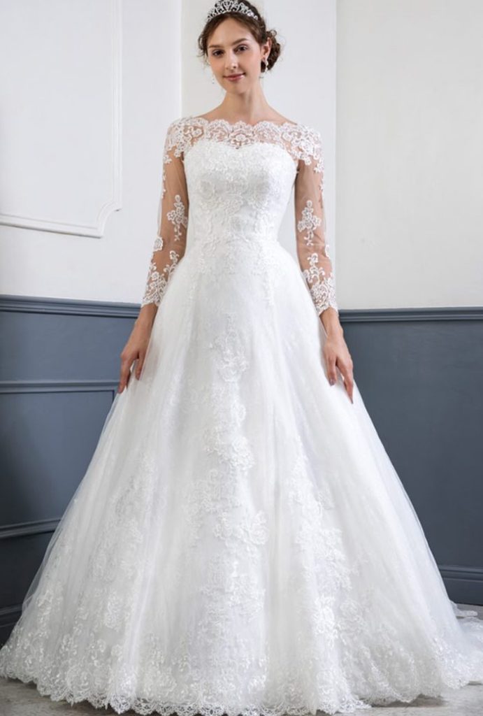 Aラインのウェディングドレスは、ドレスショップに多くの種類が揃っているのも嬉しいポイント。