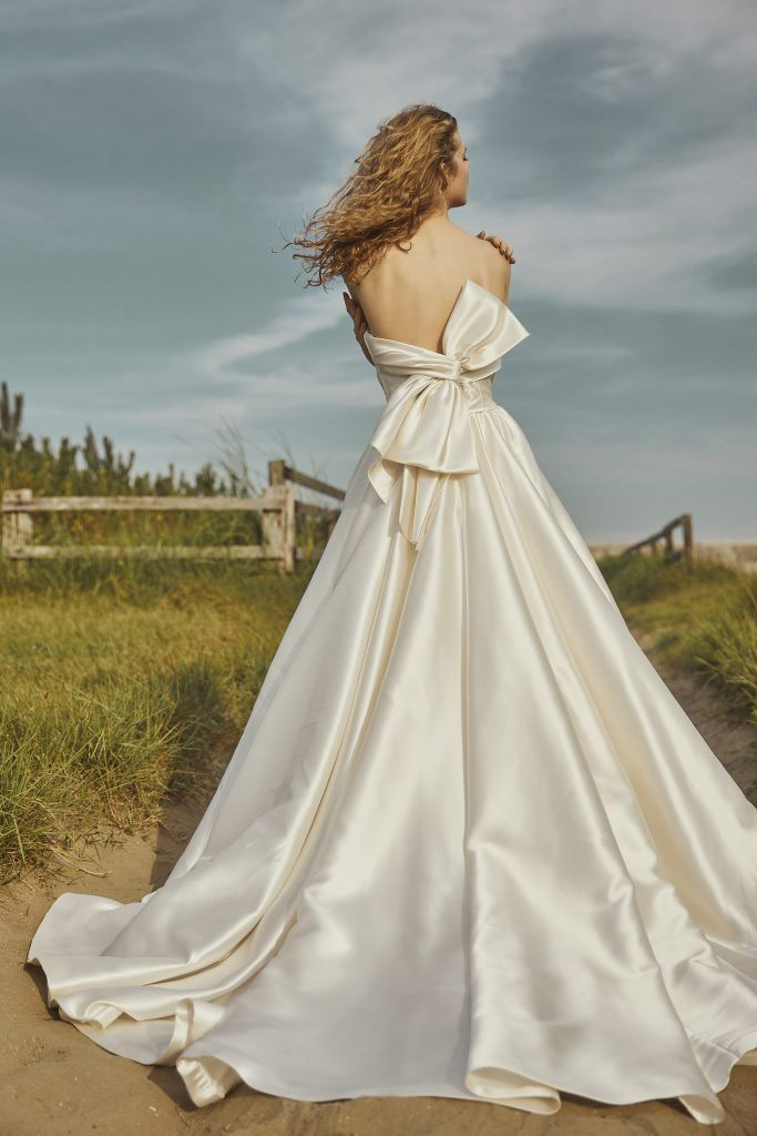 ナチュラルなロケーションでも品よく映え、後ろ姿まで映画のワンシーンのように魅せてくれる一着です。