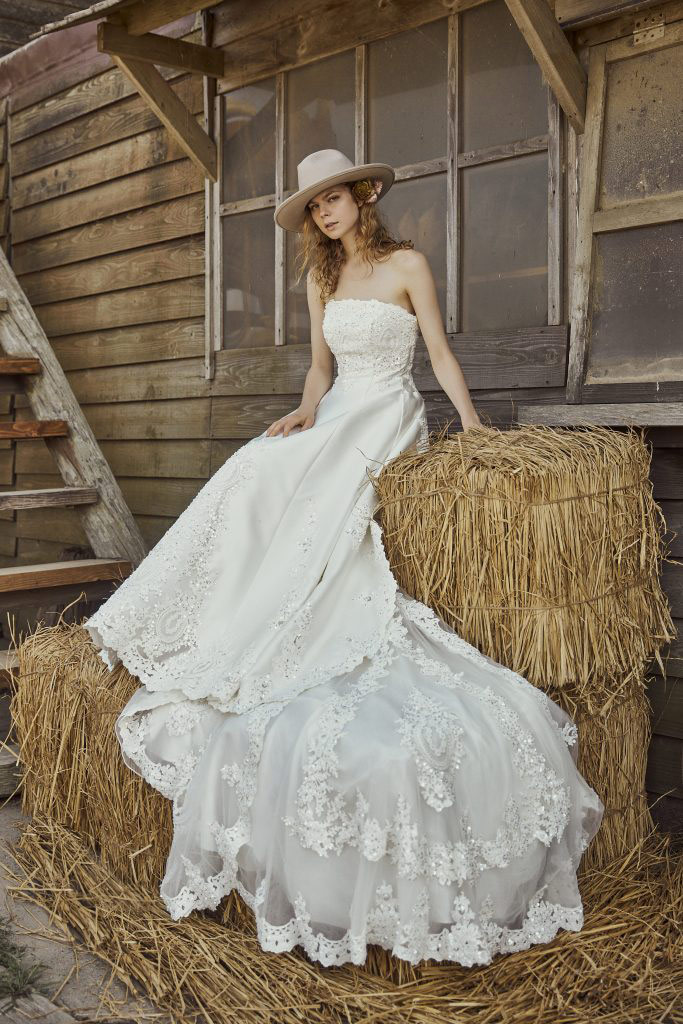 全体にレース素材を使い、その上にチュールを重ねてエンブロイダリーの装飾を施した華やかな「オリゾン」。