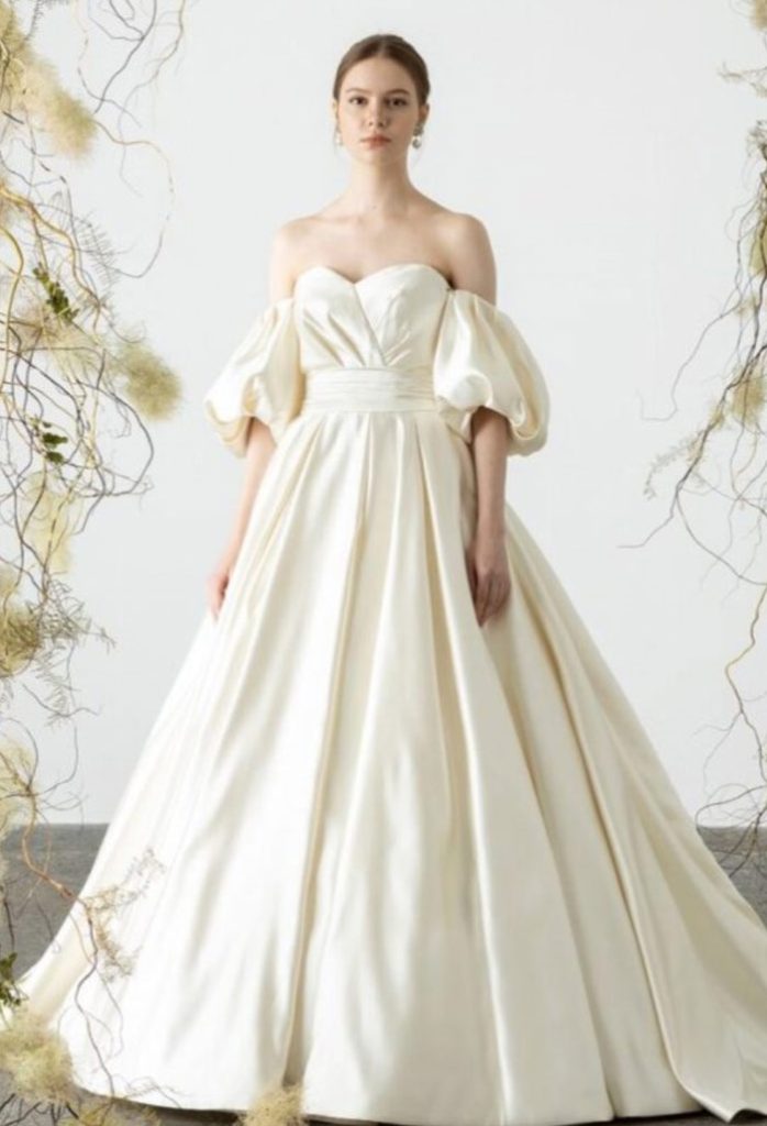 ウェディングドレスの定番シルエットといえば「Aライン」。