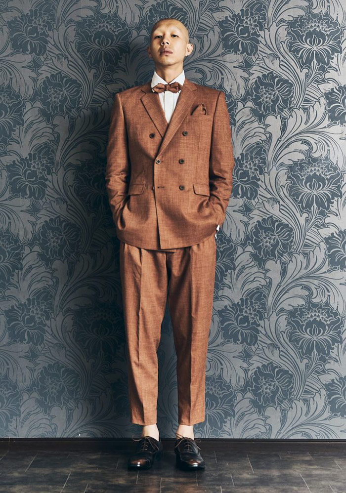 トレンドのテラコッタカラーのカラードレスとも相性が良いので、新婦のカラードレスと調和するタキシードを選びたい方にもおすすめです。